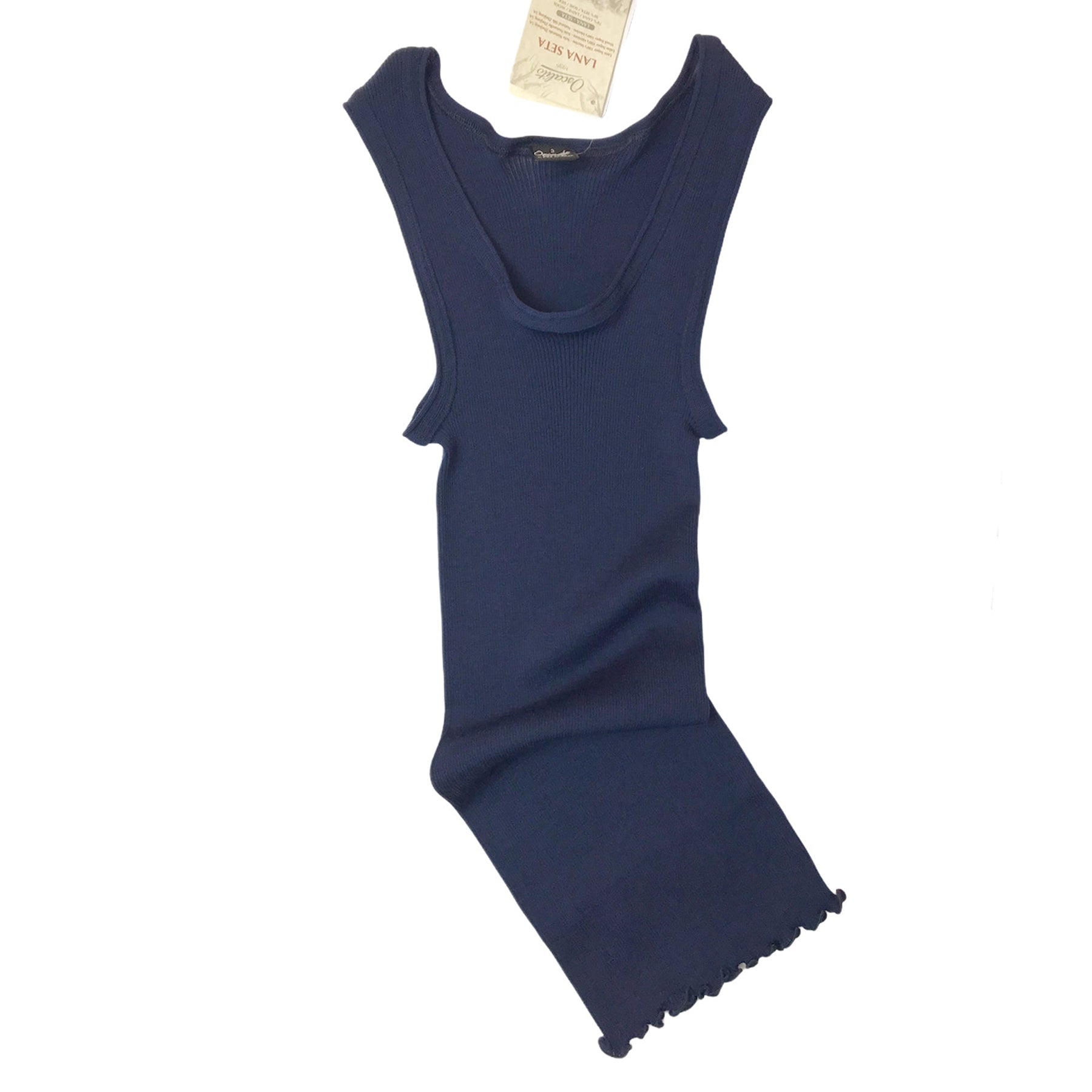 Oscalito rib tank top made from a blend of Merino extra fine wool and pure silk.
