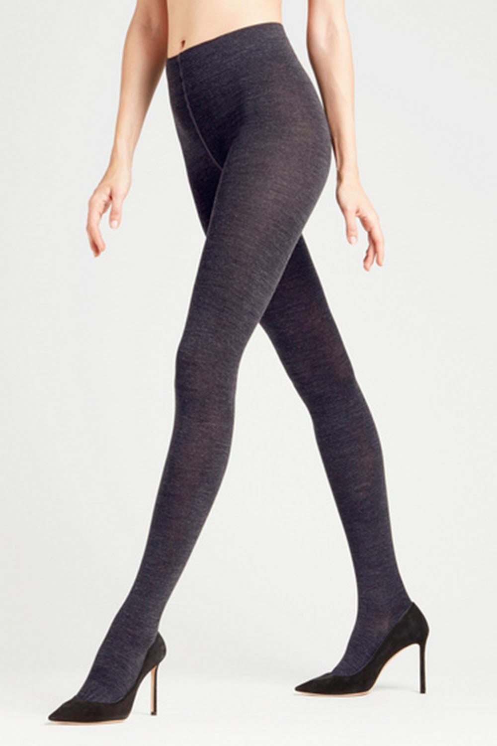 Warming Merino wool outside and soft cotton inside. These plain knit tights have reinforced heel and toe and comfortable wide knitted top that doesn't dig in to the waist.