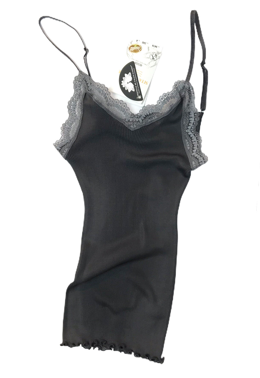 Oscalito rib camisole made from pure silk organza and with French leavers lace. The camisole has adjustable shoulder straps.