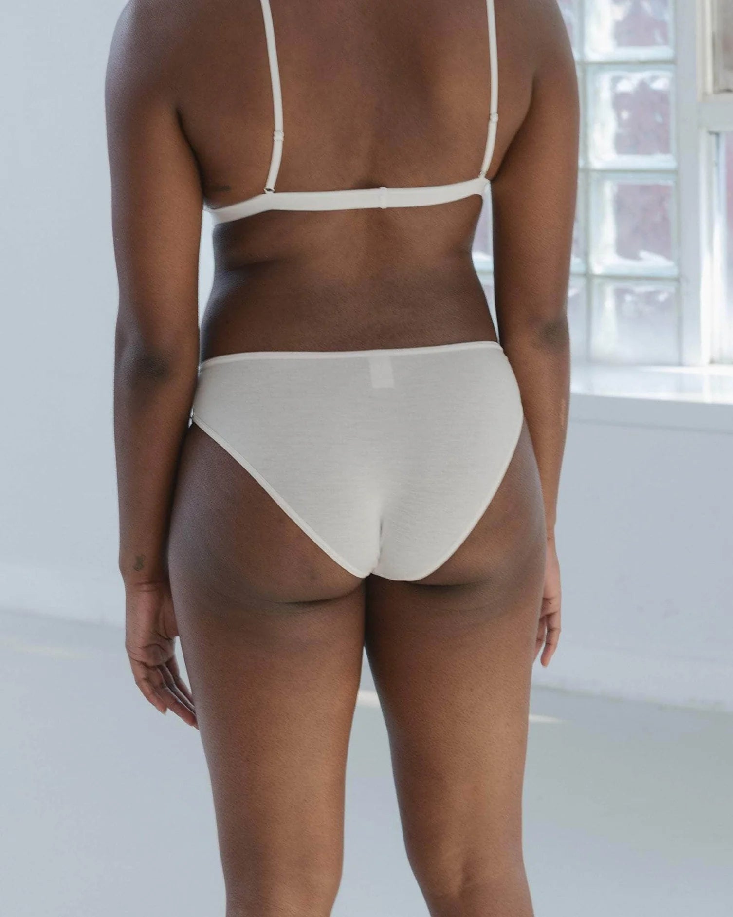A bamboo jersey underpant with an elastic trim at waist and leg.