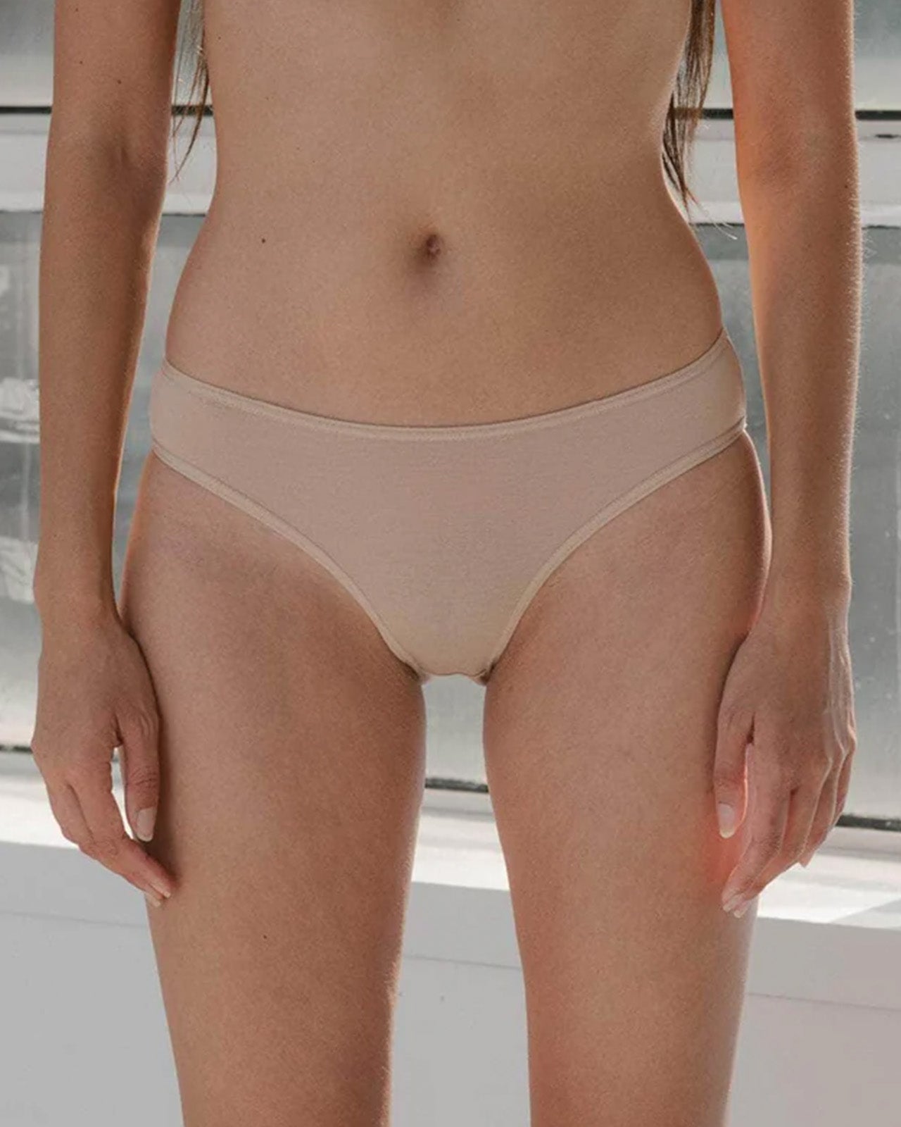 A bamboo jersey underpant with an elastic trim at waist and leg.