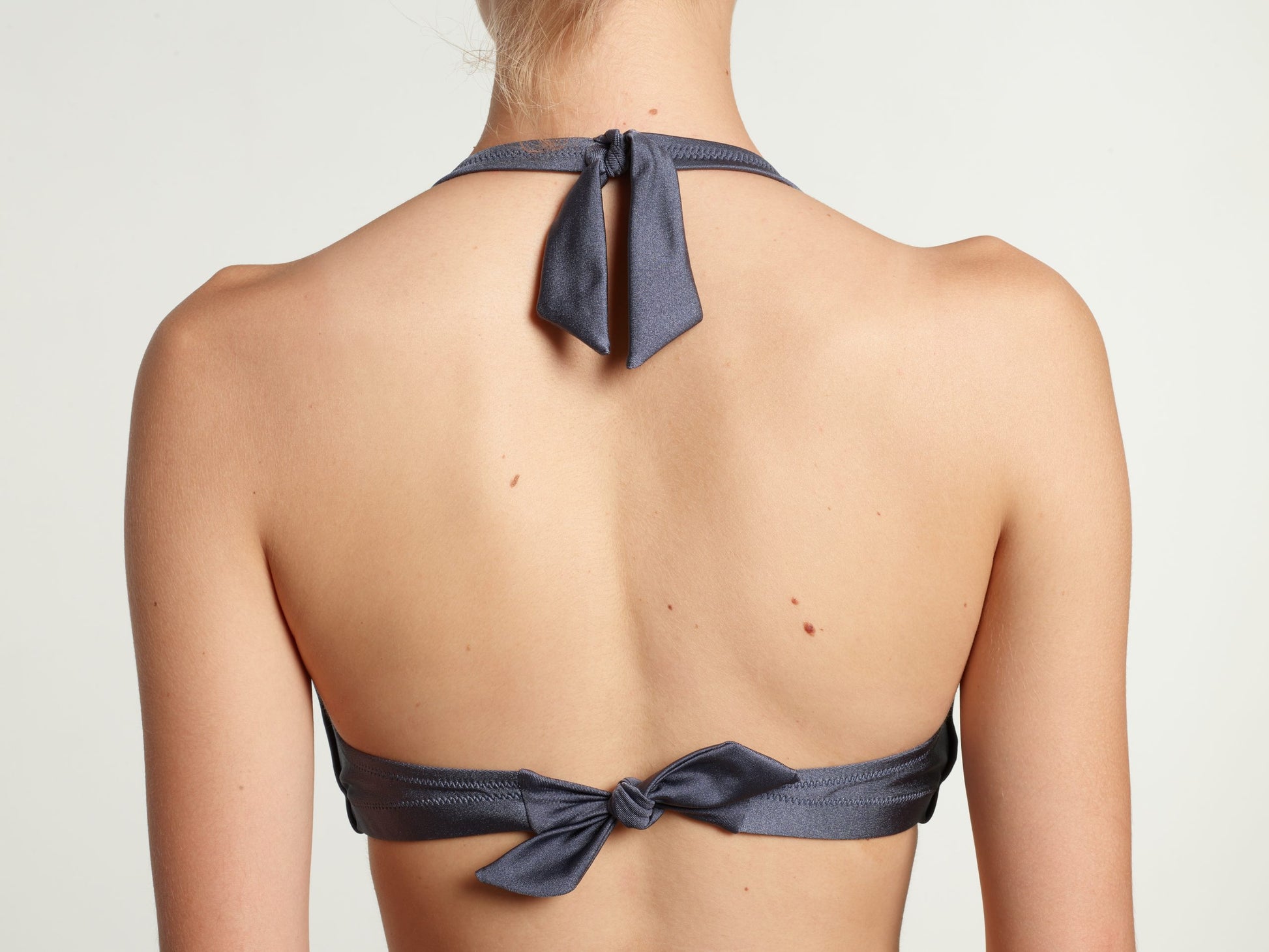 Clara is a halter neck bikini top that provides great support and is suitable for generous breasts thanks to its elastic band under the breasts and its wide straps.