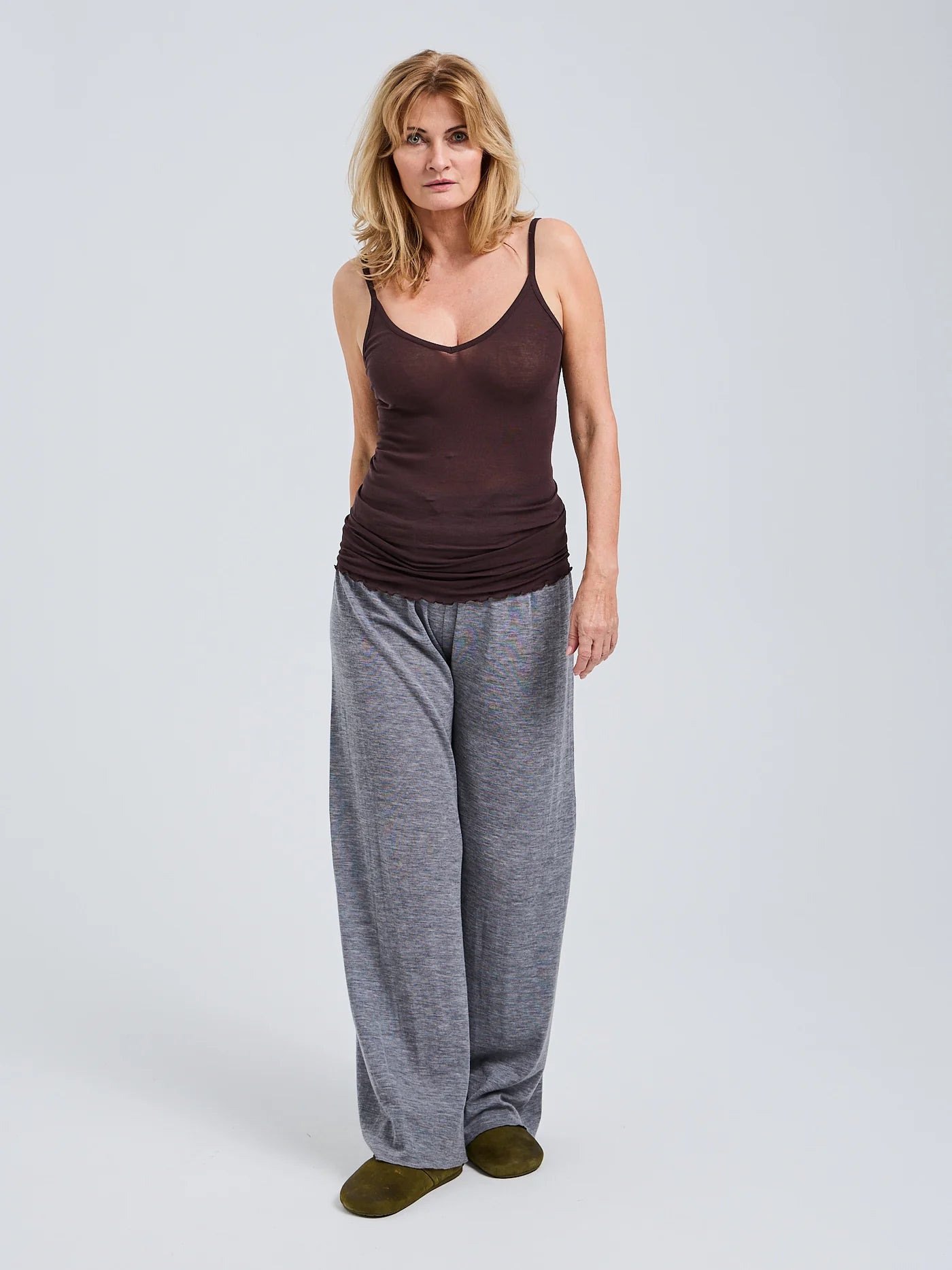 Spagetti top made in 100% breezy and soft cotton. The V neck top has adjustable straps  overlocked bottom edges.