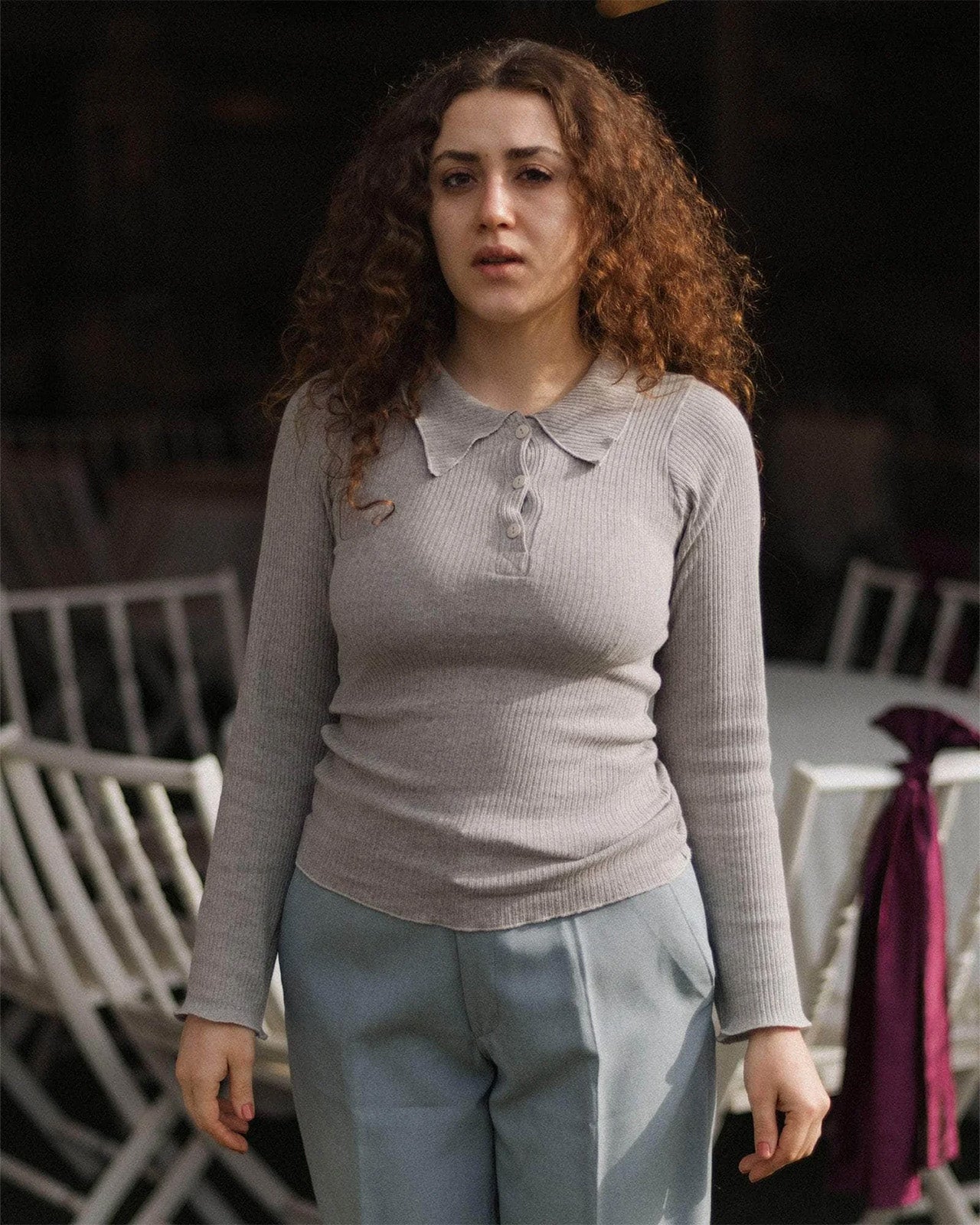 Collared long sleeve shirt in recycled cotton. Half button placket with slighty flared wrists.