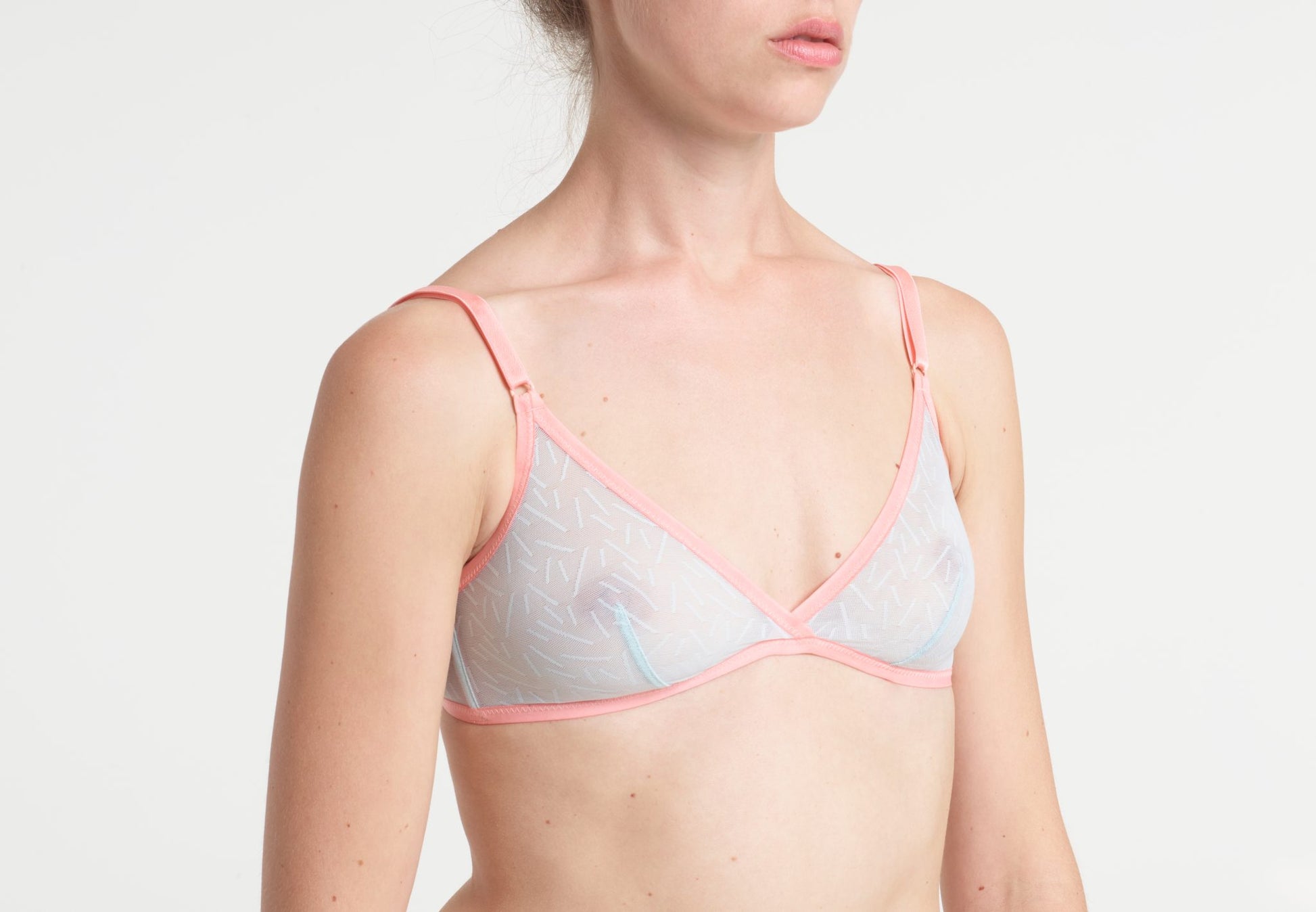 Elisa soft bra is made from a high quality fine tulle with geometric patterns. The fabric is soft and elastic.