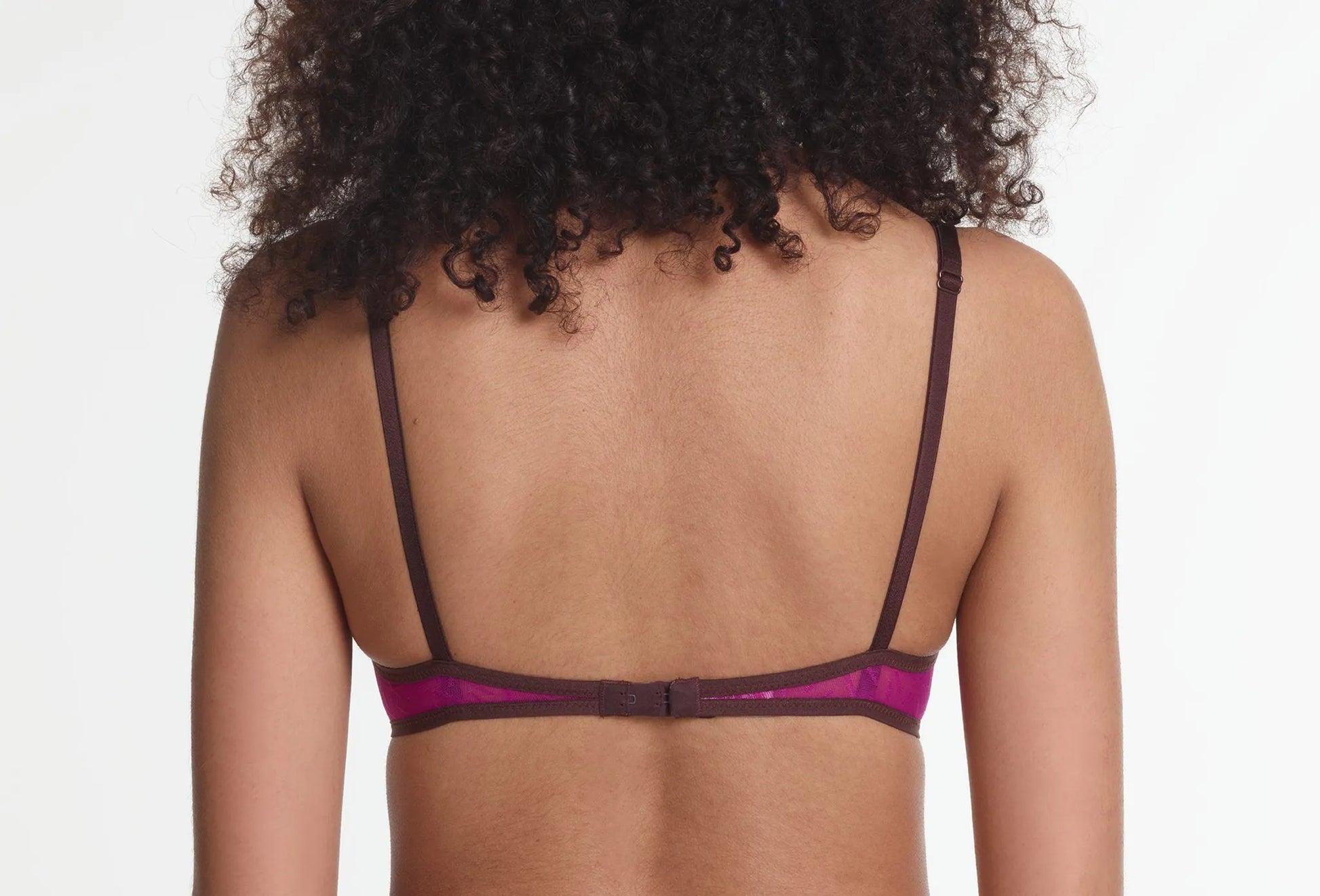 Elisa soft bra is made from a high quality fine tulle with geometric patterns. The fabric is soft and elastic.