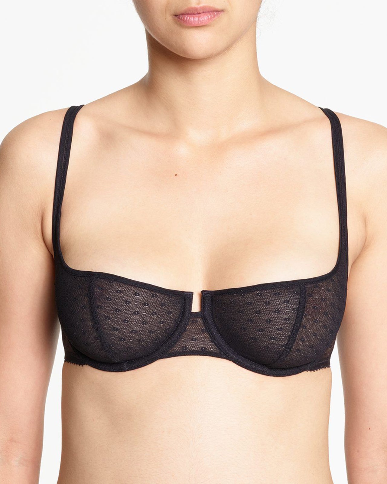 Joanne balcony bra is made from delicate point d’esprit tulle. The bra has a perfect cut for a low neck line and is designed for a maximum décolleté effect.