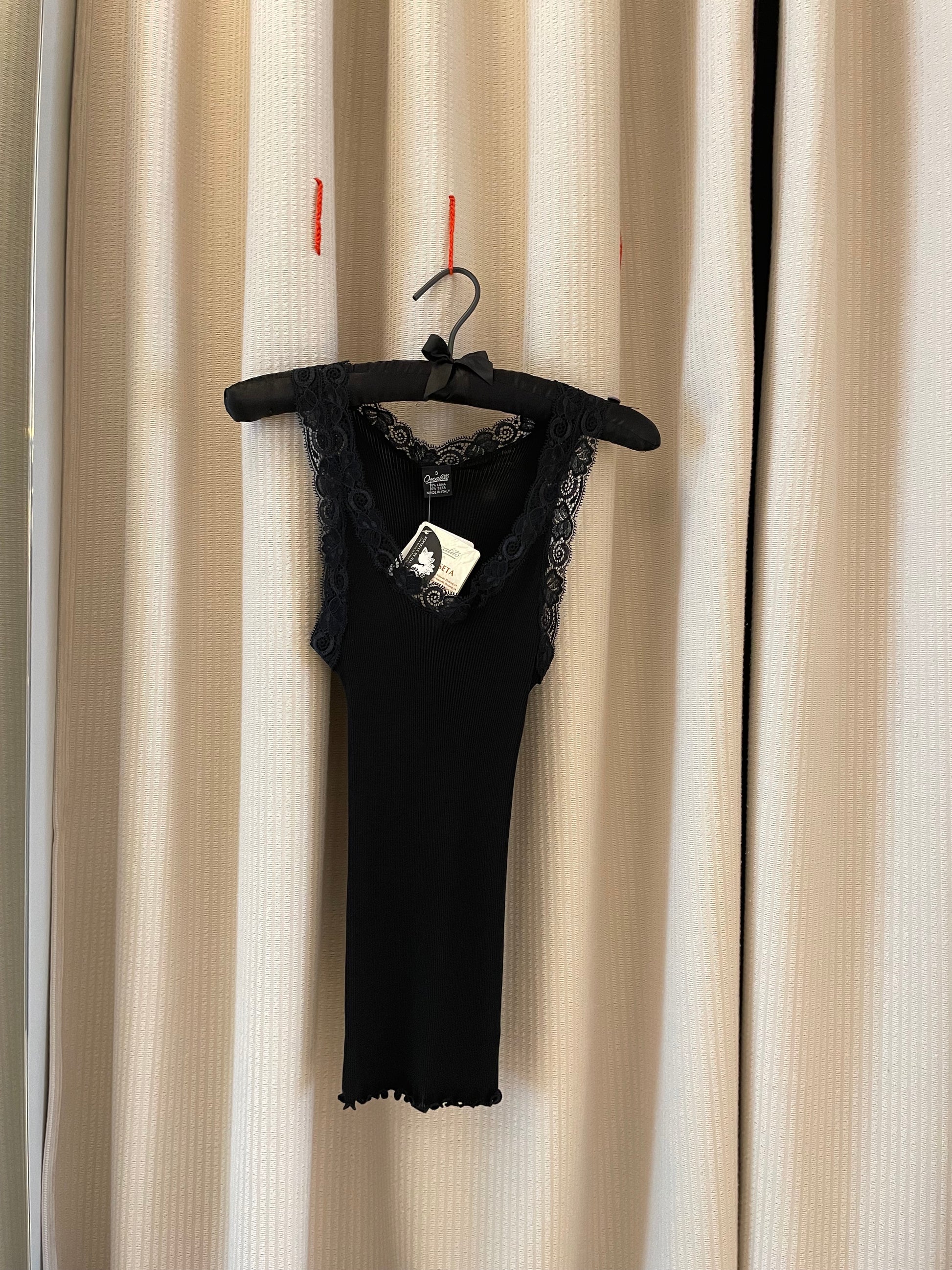 Oscalito rib tank top with French leavers lace and made from a blend of Merino extra fine wool and pure silk.