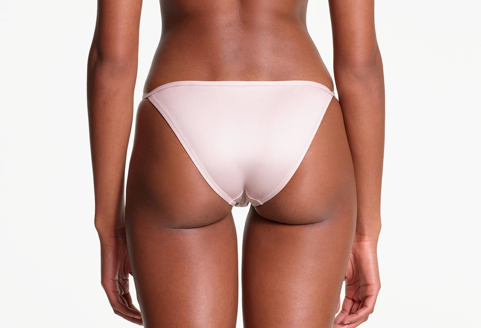 Adjustable bikini brief made from recycled Italian fabric with a satin finish.