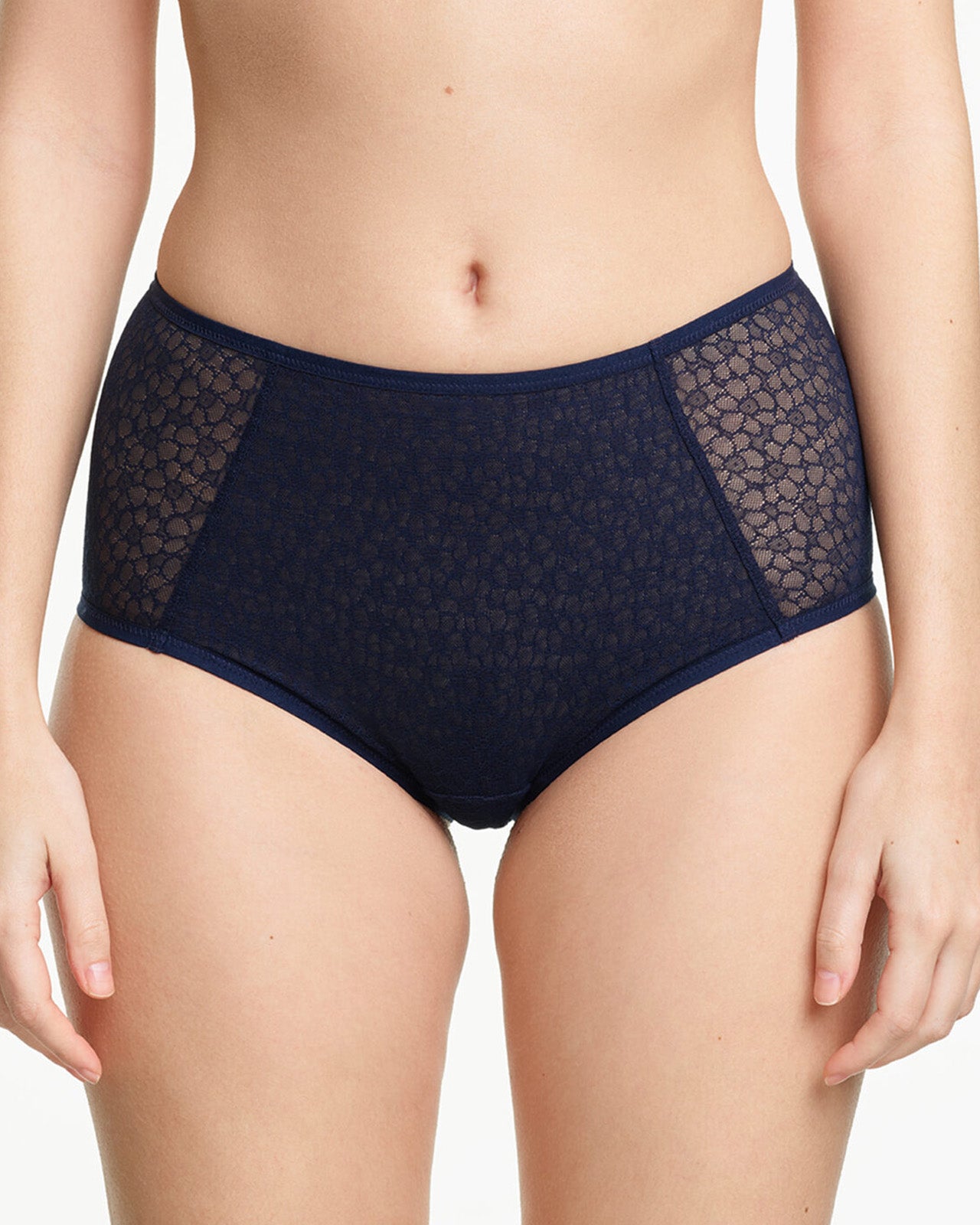 A high waist panty made from delicate flowery stretch tulle. The fabric is soft and elastic.