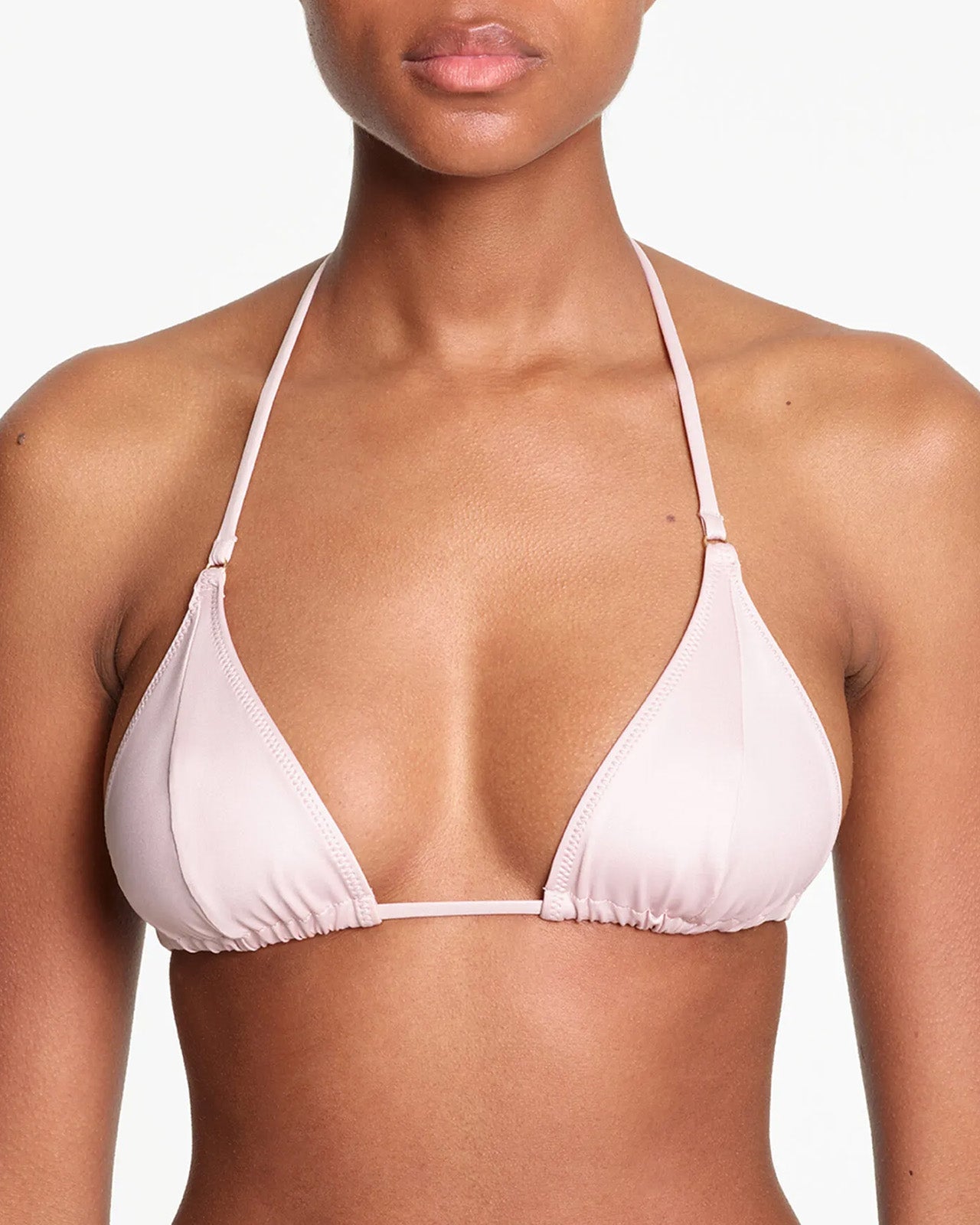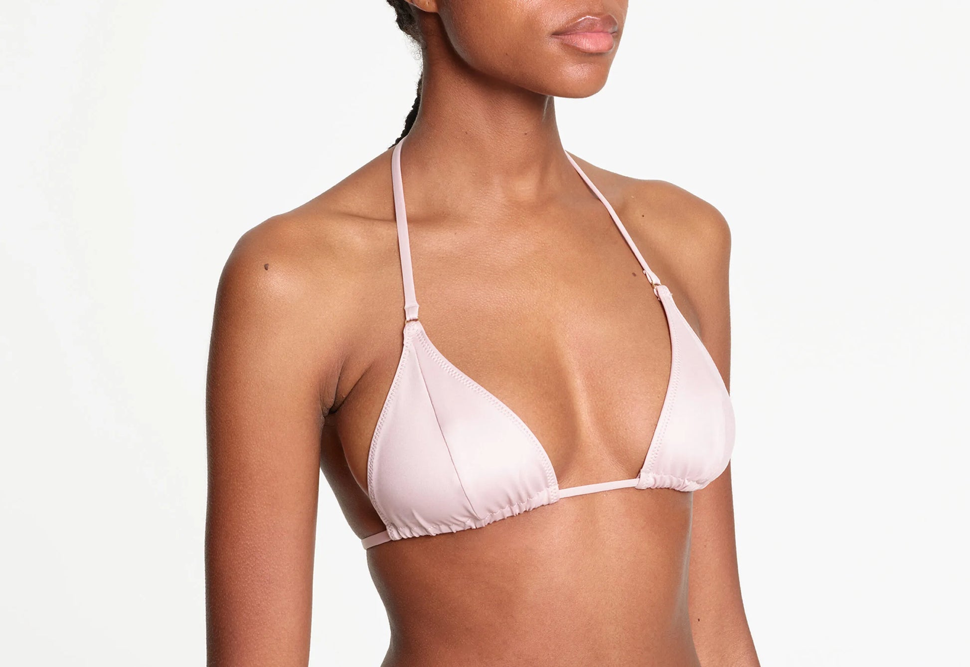 Triangle bikini top made in a recycled Italian fabric with a satin appearance.