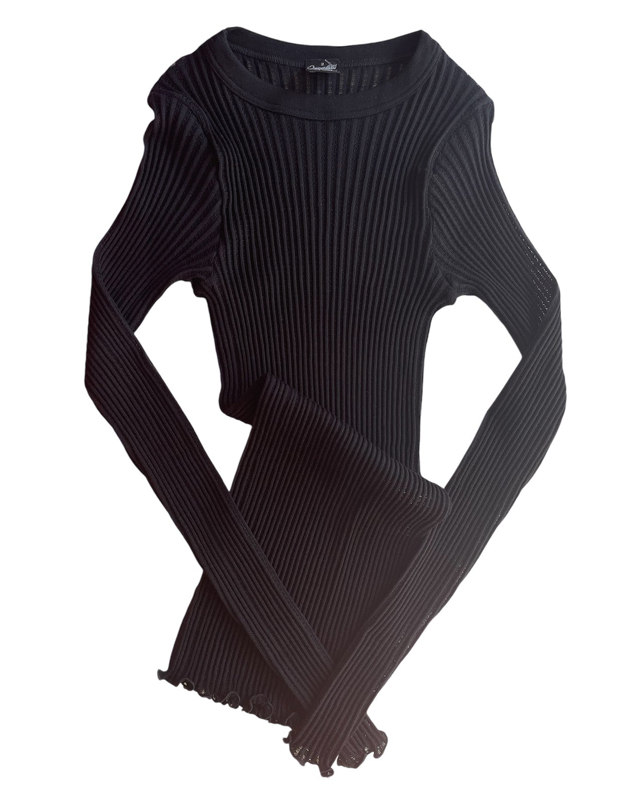 Open knit long sleeve shirt with round neck made from a blend of Merino extra fine wool and pure silk.