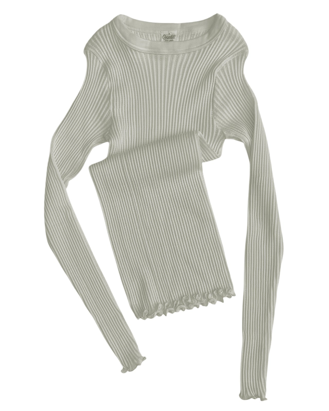 Open knit long sleeve shirt with round neck made from a blend of Merino extra fine wool and pure silk.