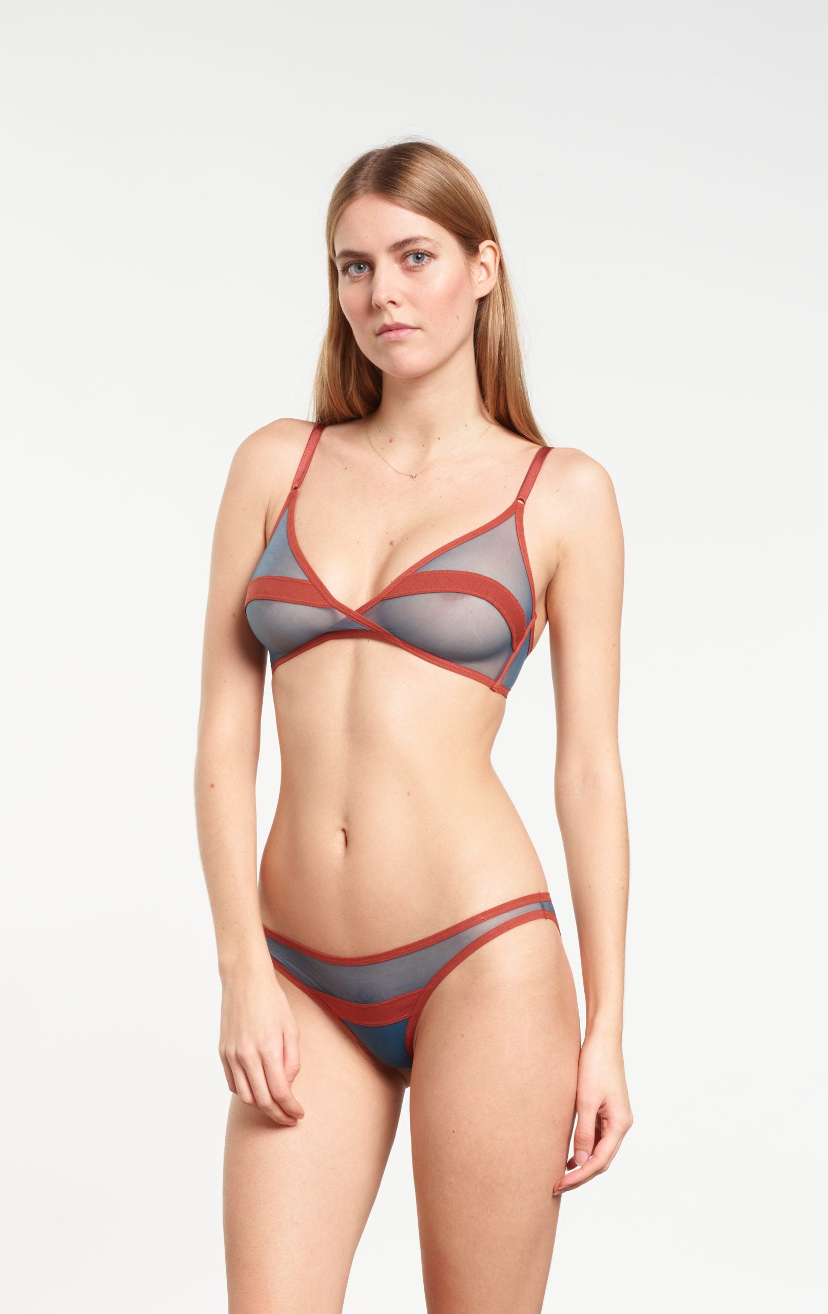 A low waist panty made from a stretch tulle with muslin ribbons.