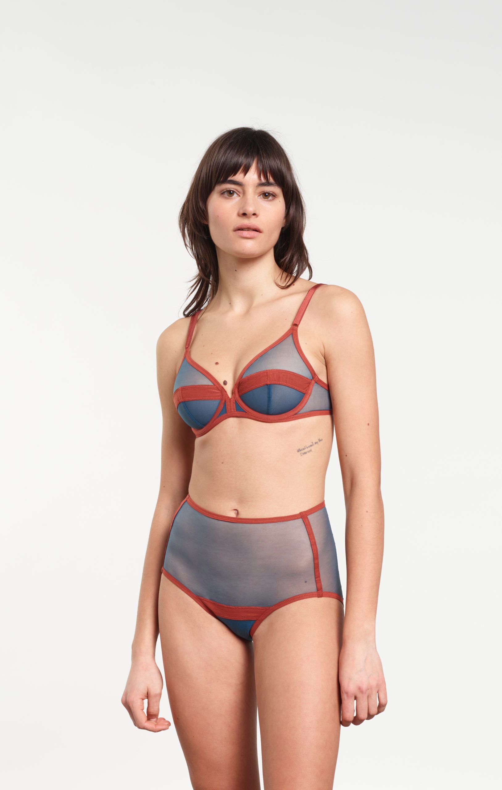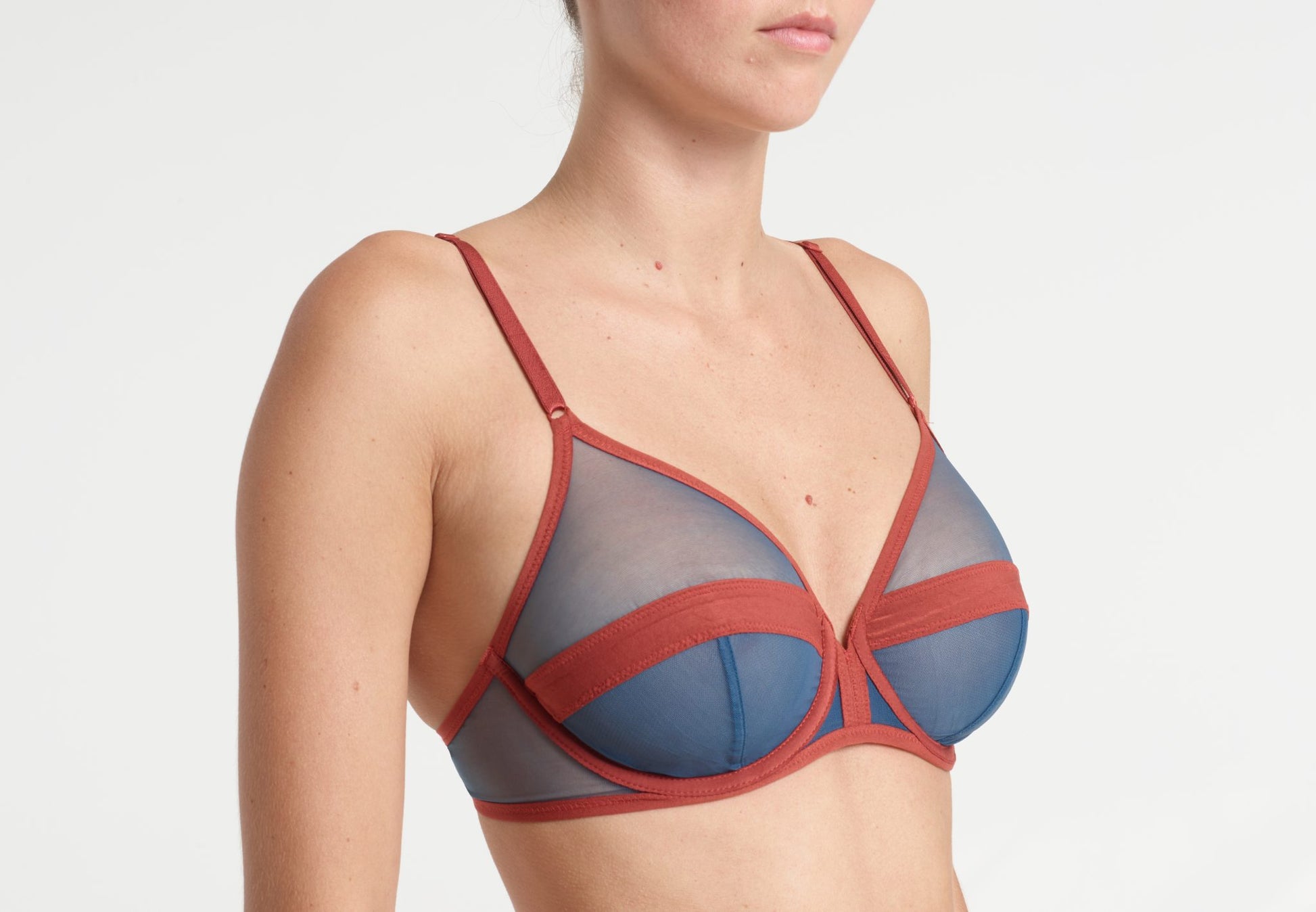 Serena wired bra made from a stretch tulle with muslin ribbons.
