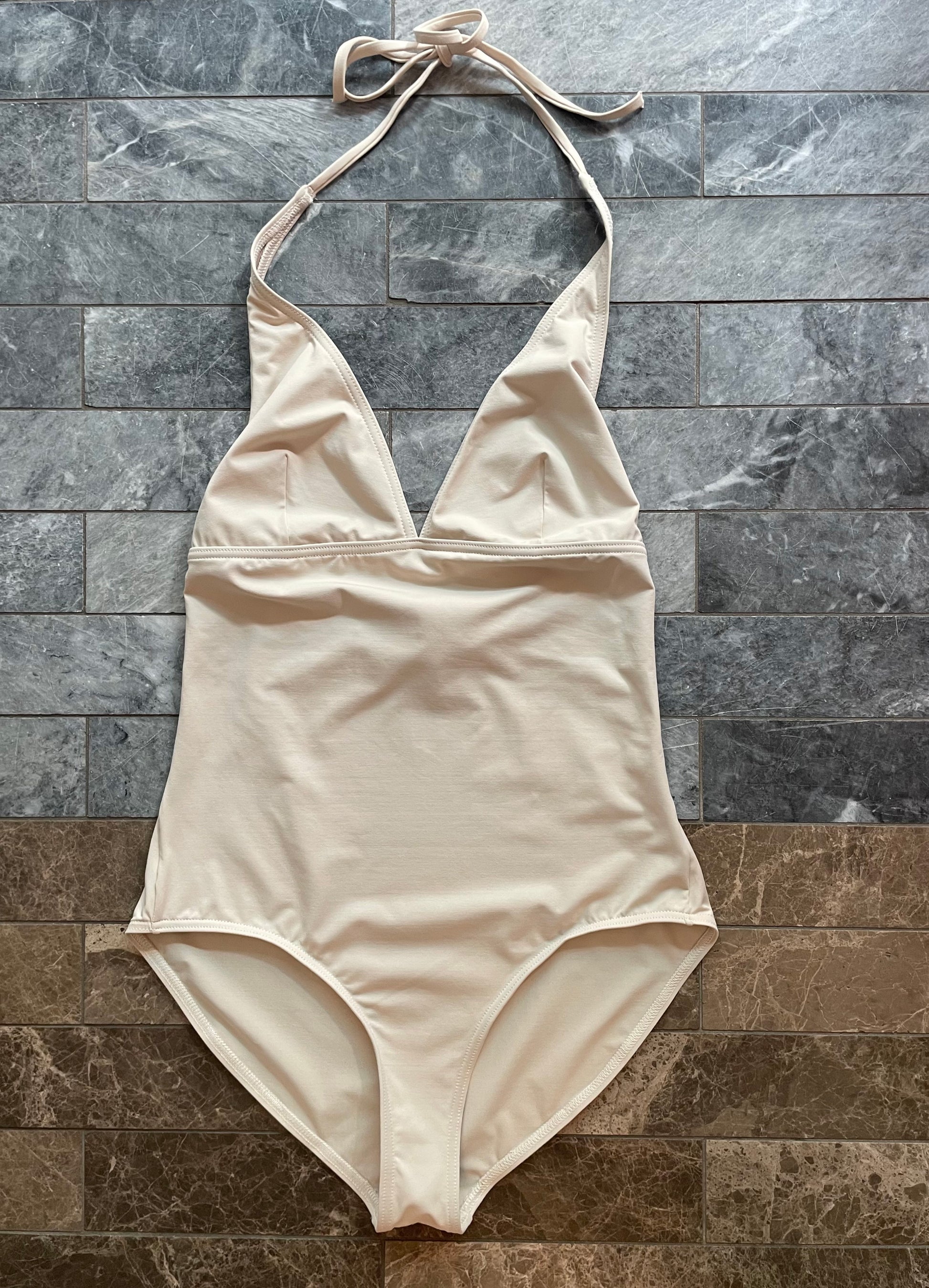 This Shoulder Strap swimsuit is a new take on the classic Fillo Swim halterneck swimsuit. It provides even better support for larger busts while creating a flattering low-cut plunge neckline at the same time. The straps are adjustable and can be tied around the shoulders - around the shoulders and crossed on the back - or around the neck. The swimsuit is lined on the front with an ultralight fabric.