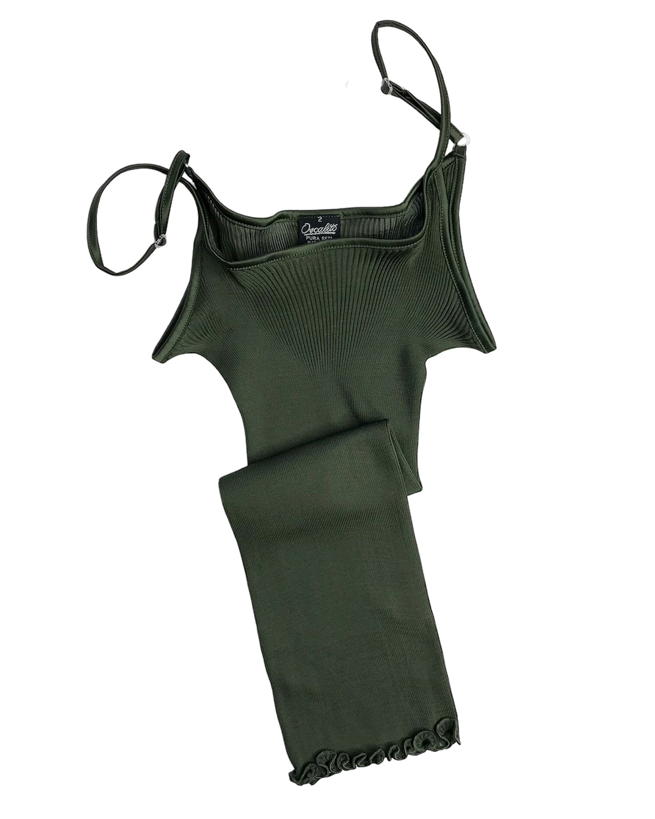Oscalito rib top made from pure silk organza. The top has silk satin edge trimming and adjustable silk satin shoulder straps.