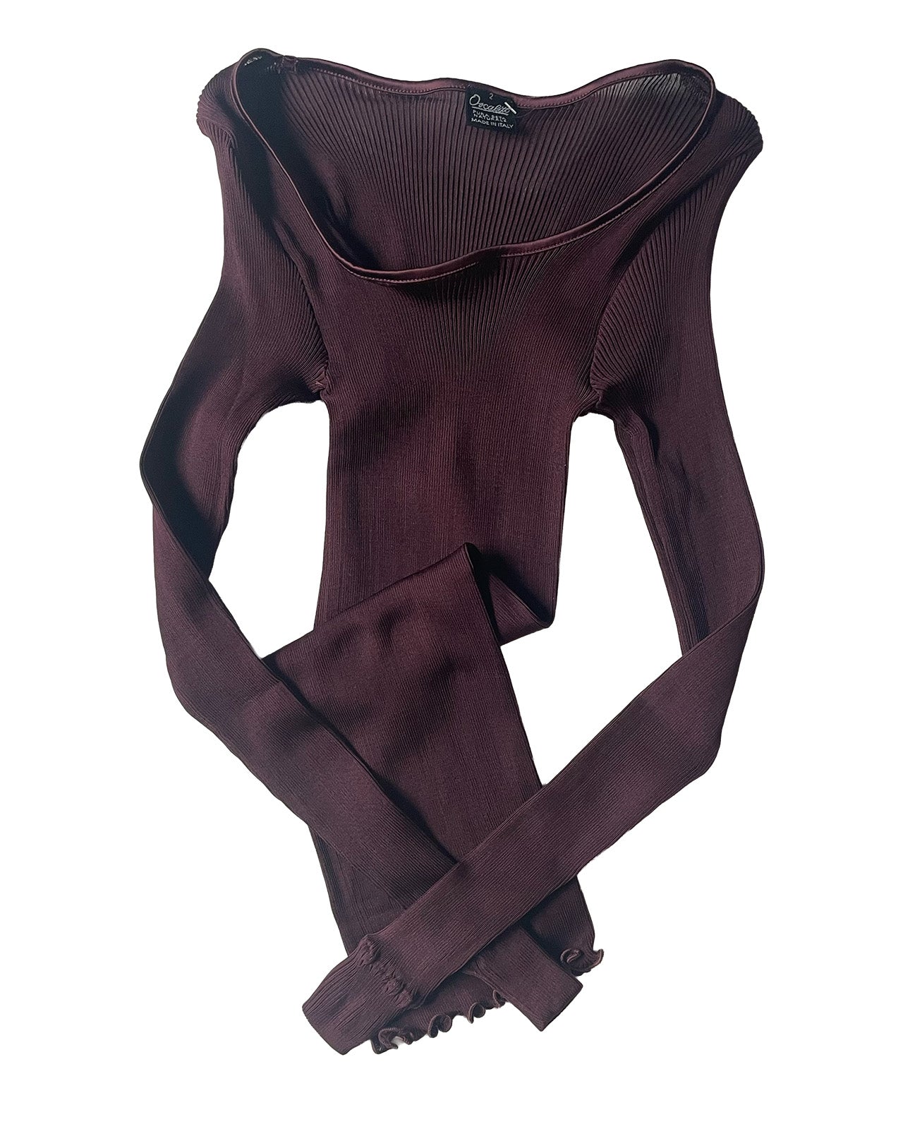 Oscalito rib long sleeve shirt made from pure silk organza with silk satin edge trimming.