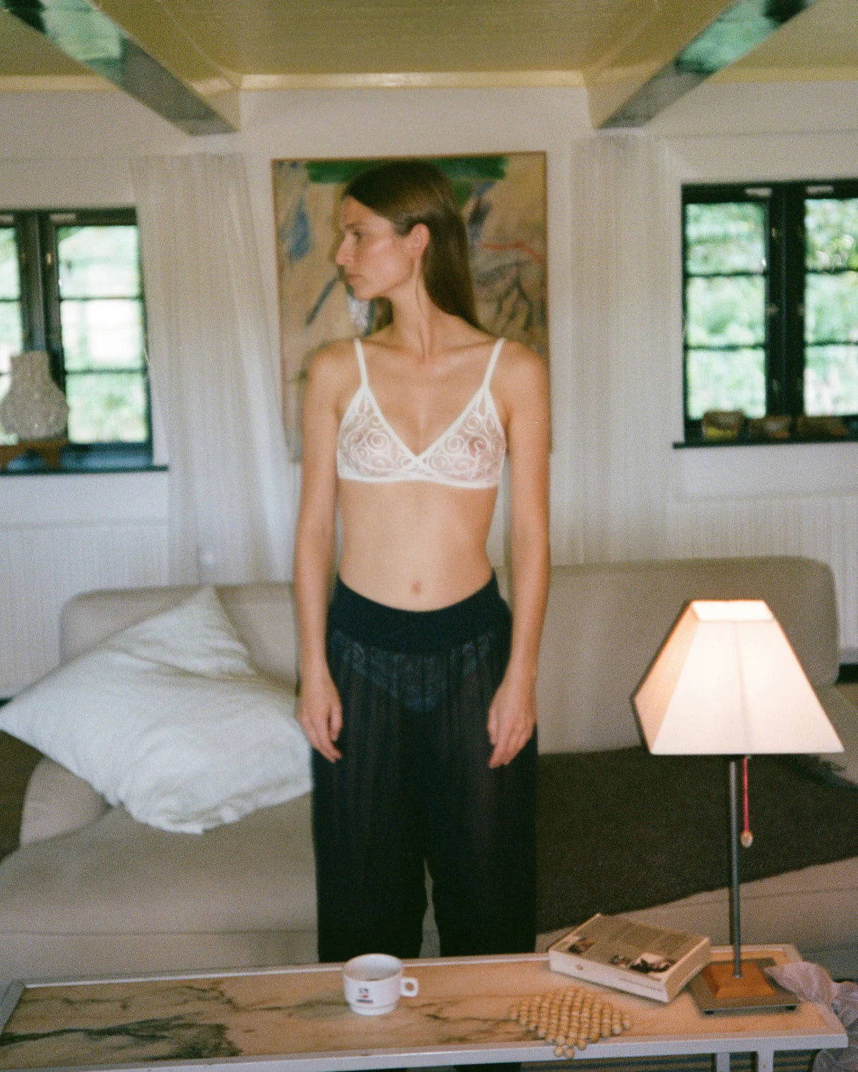 Made in Portugal, using only European materials. The french swirl lace is Oeko-Tex and GRS certified and the yarn has been dyed using a filtration system that cleans and recycles the water throughout the process.