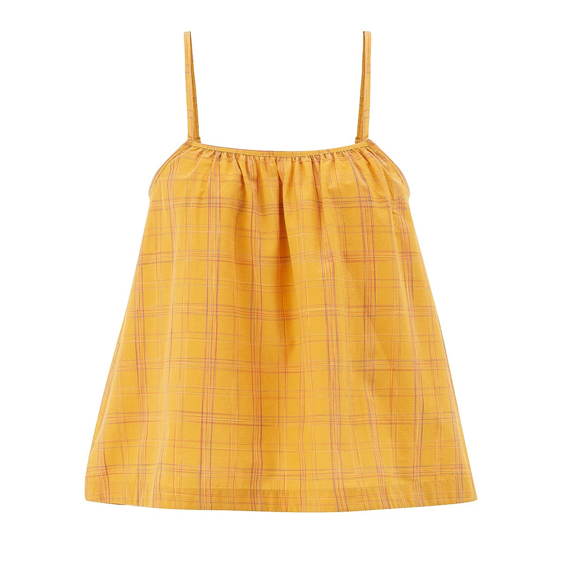 A light and breezy cotton camisole with adjustable straps. A subtle tonal plaid print adds texture and depth.