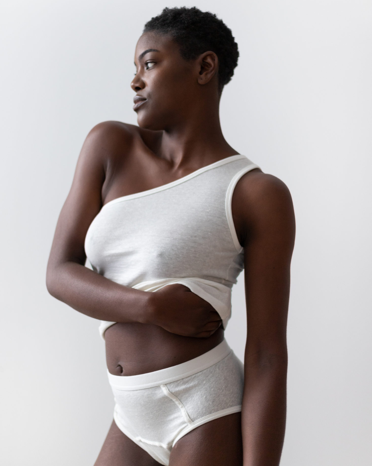 Asymmetrical top to be worn during warmer seasons or for low impact sports such as yoga.