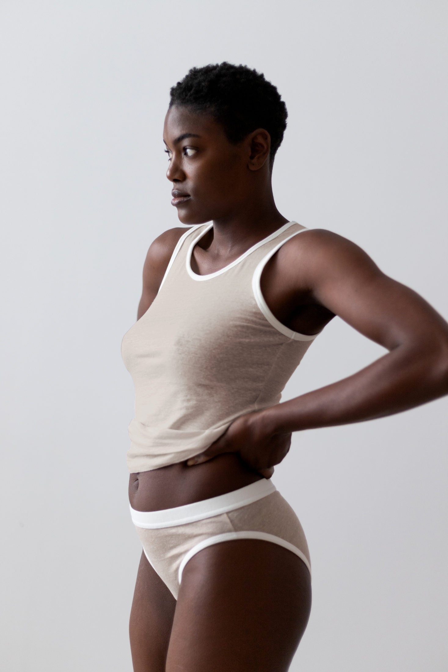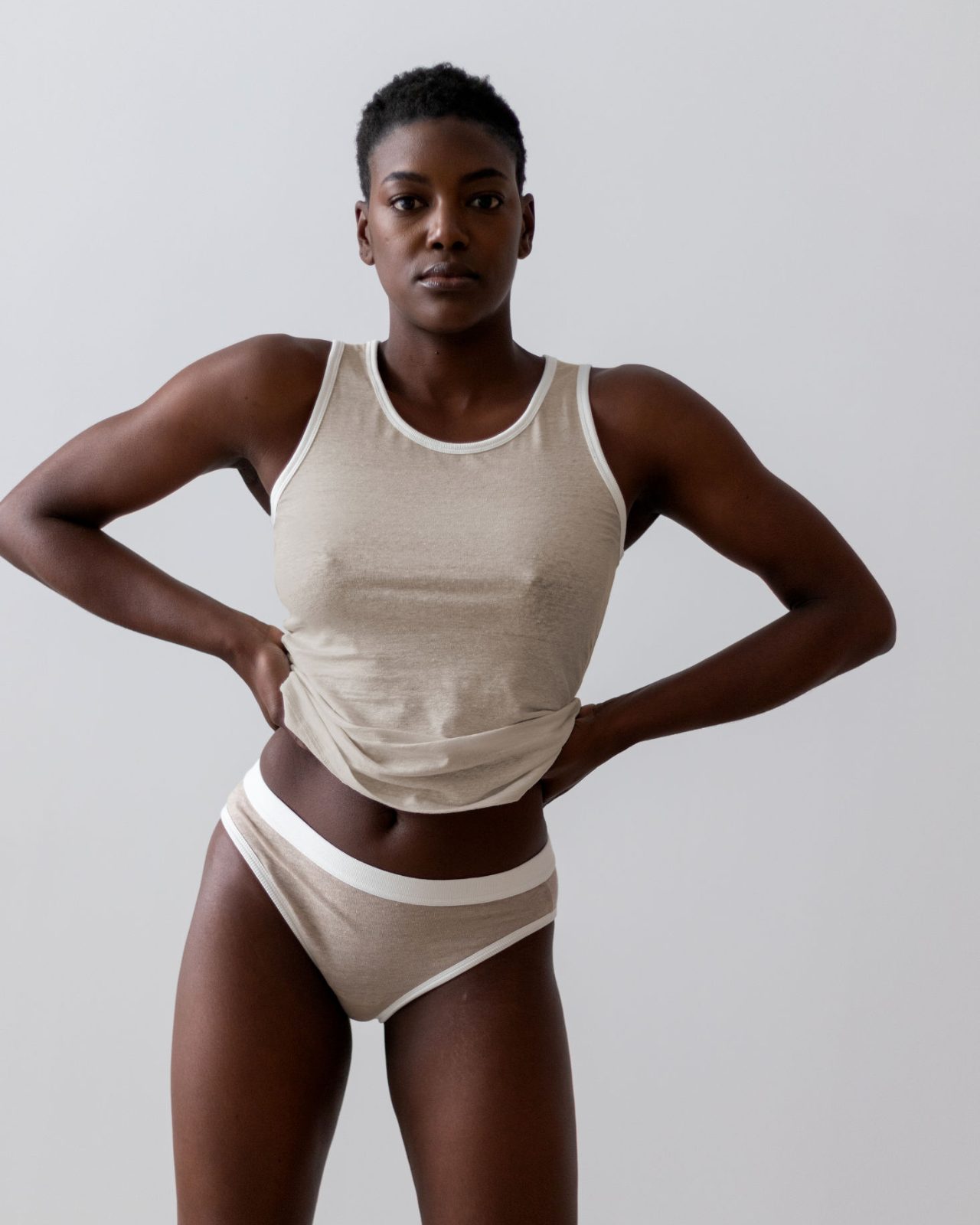 Simple and versatile tank top, to be worn as outerwear in warm weather or as underwear for have a healthy and breathable material next to your skin.