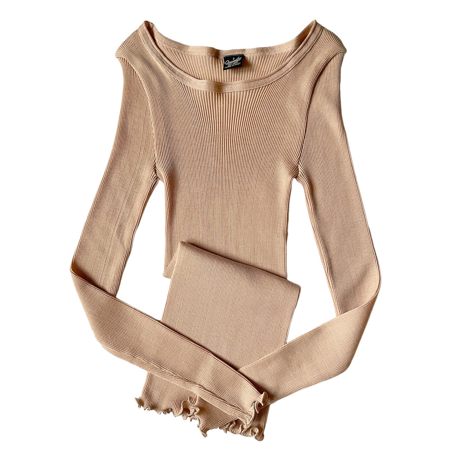 Oscalito rib long sleeve shirt with round neck made from a blend of Merino extra fine wool and pure silk.
