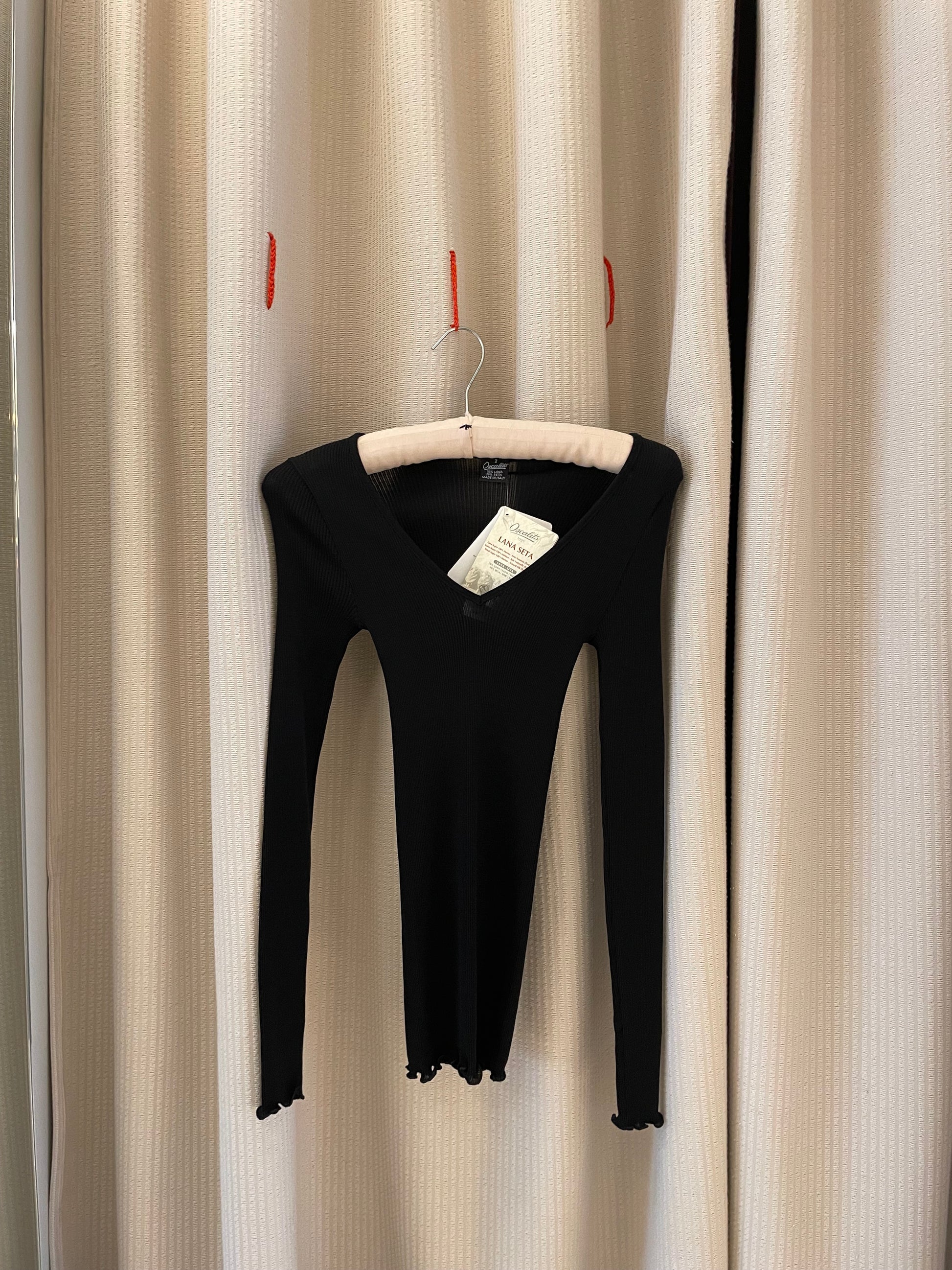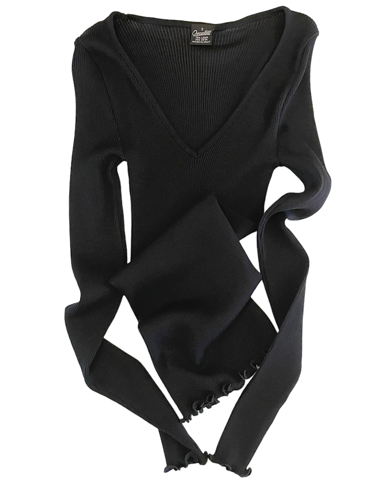 Oscalito rib long sleeve shirt with V neck made from a blend of Merino extra fine wool and pure silk.